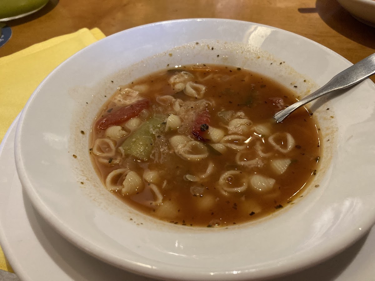 Hearty soups & starters: Minestrone Soup, Zuppa Toscana, Gnocchi Soup, and the ever-inviting House Salad with Unlimited Cheese